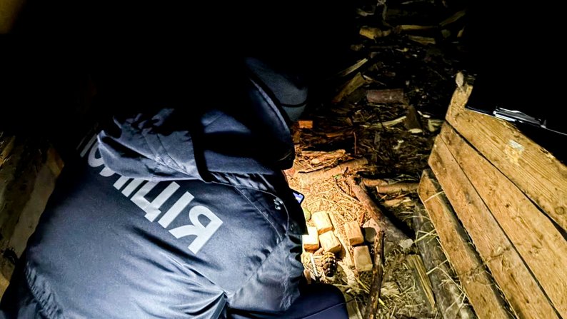 Як повідомили у поліції, у підсобному приміщенні правоохоронці виявили та вилучили два корпуси гранат Ф1 із запалами до них, 150 патронів калібру 5,45 мм та ручну гранату М67.