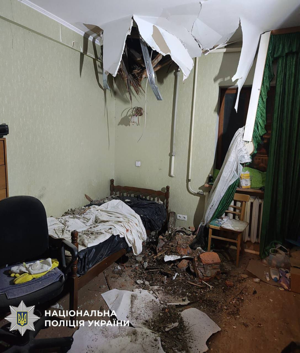 "Сьогодні вночі Київ зазнав чергової масованої ворожої атаки. Унаслідок падіння уламків БпЛА руйнування та пошкодження зафіксовано у Дніпровському, Дарницькому, Печерському та Шевченківському районах. У Шевченківському районі ворожий безпілотник поцілив у 22-поверховий житловий будинок, внаслідок чого виникла пожежа. Двоє громадян постраждали - чоловік та жінка отримали садна та порізи склом, допомогу надано на місці", - звітує Нацполіція.