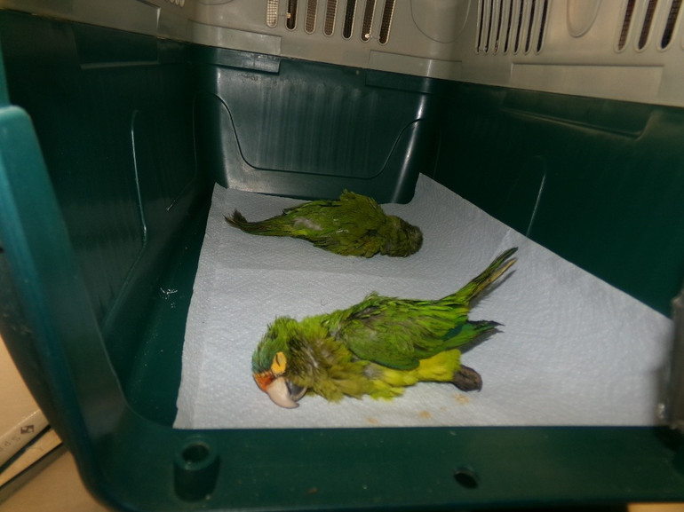 Птахи були у коричневих мішечках. Вони дихали, але були під заспокійливими препаратами. Папугам надали першу ветеринарну допомогу та передали їх Міністерству сільського господарства для карантину.