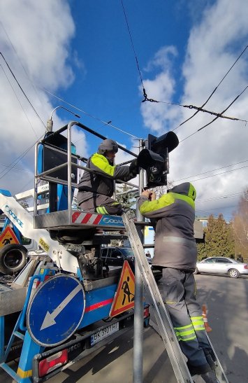 Також провели аварійні відновлювальні роботи після ДТП на транспортних світлофорах вул. Соборна – Коцюбинського. Замінили 4 лампових на смарагдові світлофори (2 транспортних і 2 пішохідних) на вул. Соборна – Кн. Ольги. Пробурили і забетонували дві транспортні стійки на перехрестях вул.С. Бандери – Севастопільська та С. Бандери – Кн. Ольги. Змонтували та підключили два звукові оповіщувачі на перехресті пр. Миру – вул. С. Петлюри, демонтували й встановили 4 смарагдові діодні світлофори на С. Бандери – Дворецька. Виконали роботи з перенесення трьох світлофорів та кронштейну на вул. Кулика і Гудачека (біля “Екватора”). Здійснили об’їзд міста по 64 світлофорних об’єктах.