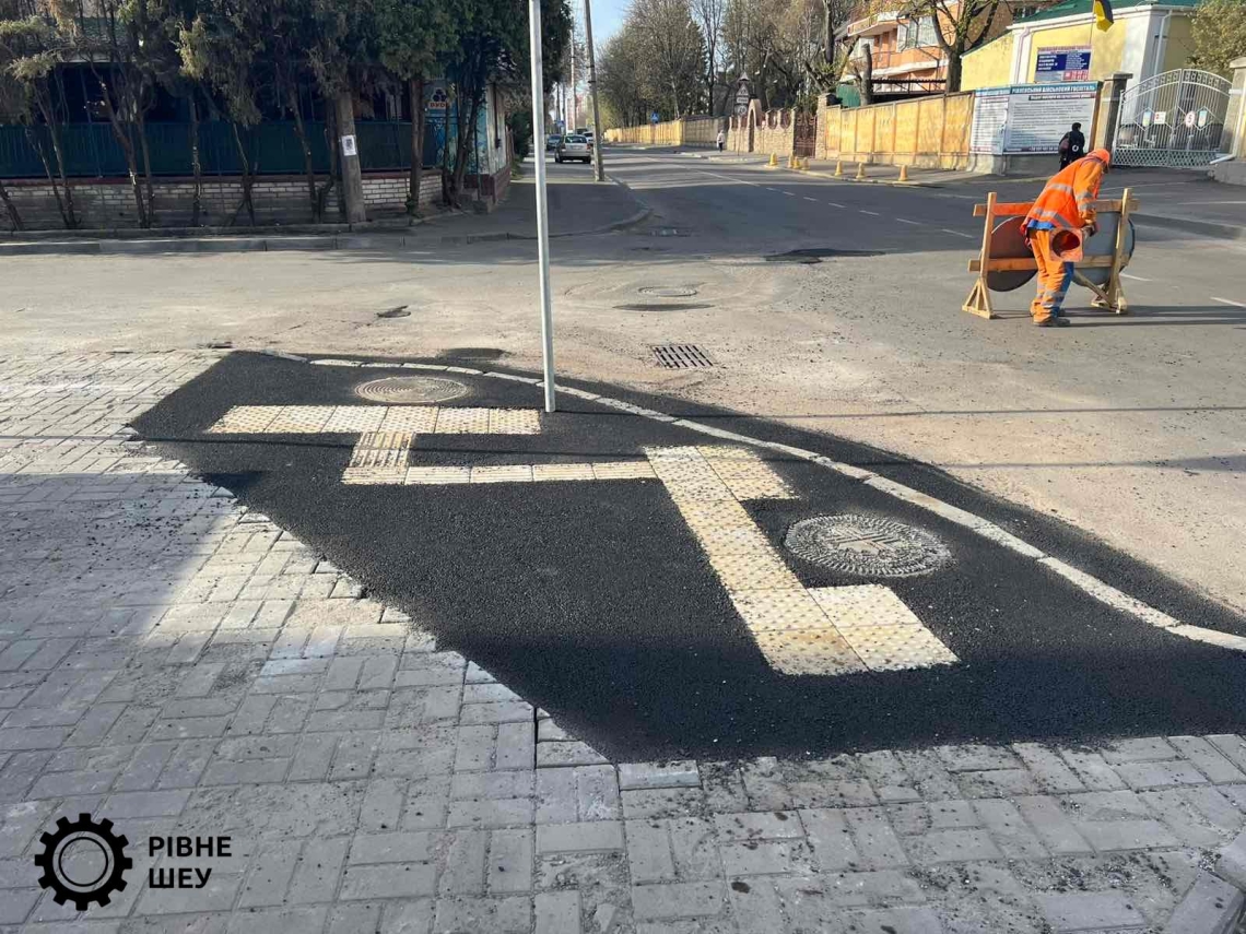 У Рівному облаштовували пішохідний перехід на вулиці Олени Теліги - навпроти медзакладу, де лікуються військовики. Зробили це на їхнє прохання.