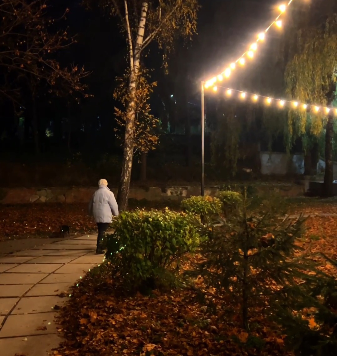 Зокрема, там замінили 7 старих світильників на LED, замінили 6 опор, натягнули 70 метрів ілюмінаційної гірлянди.