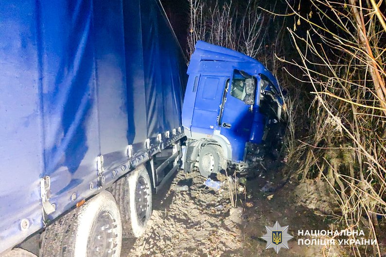За інформацією поліції, водій автомобіля Toyota, 37-річний житель Києва, виїхав на смугу зустрічного руху, де зіткнувся із вантажним автомобілем DAF із напівпричепом під керуванням 40-річного жителя Полтавської області.
