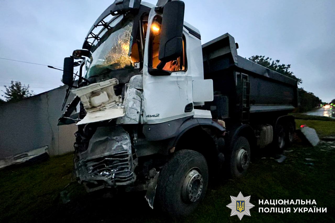 Водій автомобіля «Mercedes-Benz Arocs», 44-річний житель Житомирської області, саме рухався кільцевим перехрестям. Однак проявив неуважність, не впорався з керуванням та наїхав на бетонну стелу, кажуть в обласній поліції.