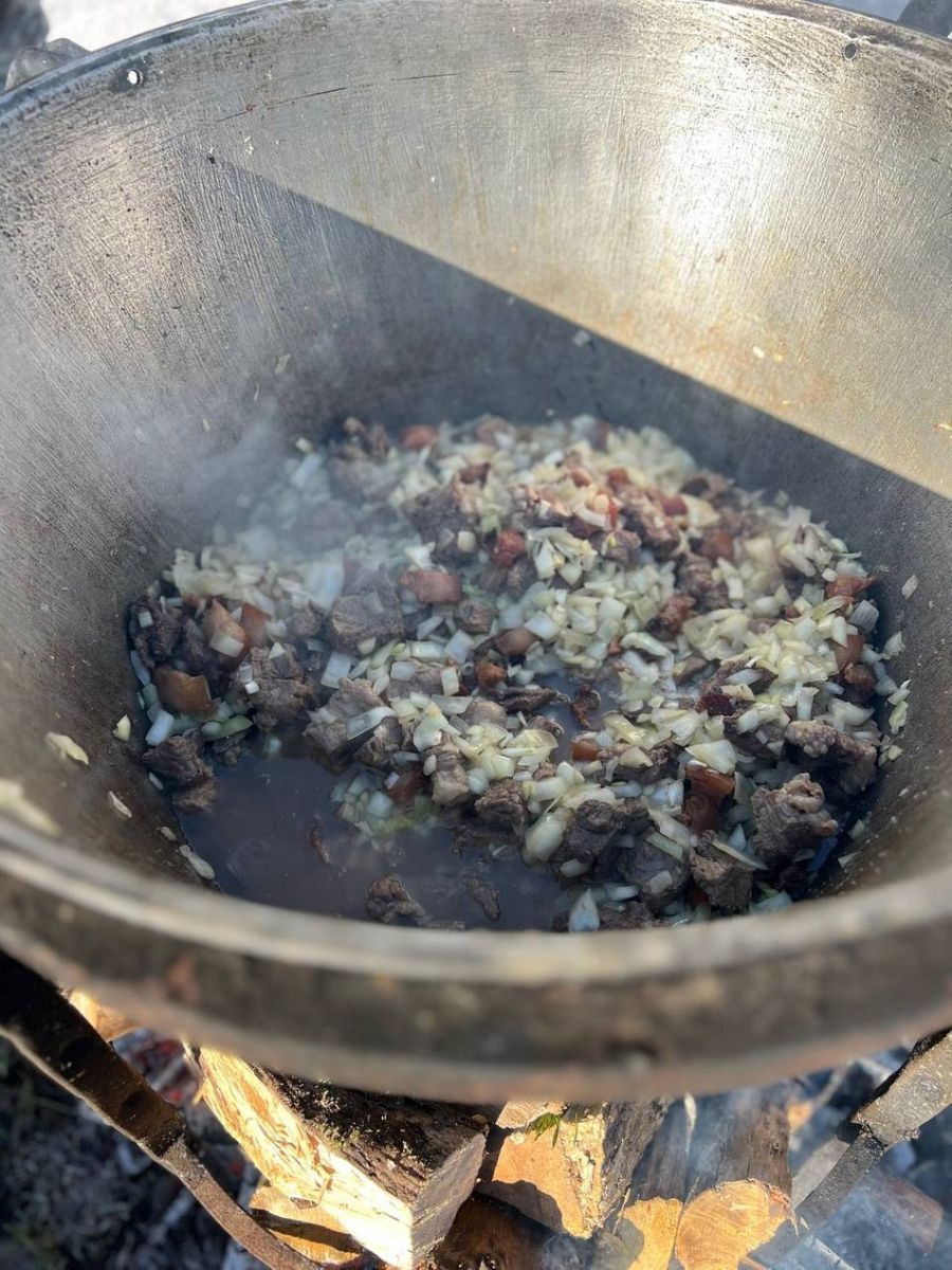 Гарячі обіди для киян, які тривалий час живуть без світла і опалення, готували волонтери з Рівного. Казан борщу та казан козацького кулішу рівняни зварили у дворі між багатоповерхівками поруч із місцевим пунктом незламності. Їжу роздавали людям, які через відключення не мали можливості самостійно приготувати обід.